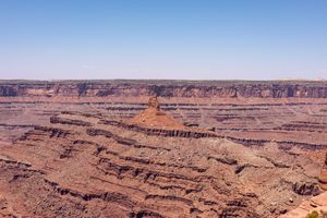 Shafer Canyon, part of the Dead Horse State Park region, is known for its dramatic red-rock drop-offs, winding canyon branches, and expansive views shaped by the Colorado Plateau. The lone rock point in this frame represents the heart of that convergence — a place where erosion carved around instead of through, leaving one towering remnant to witness everything else fall away.