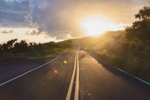 The Piʻilani Highway (Hwy 31) follows the rugged southern coastline of Maui, known for winding turns, raw landscapes, and its connection to the famous Road to Hāna. The route passes sea cliffs, lava fields, and open country where the island feels untouched and wide, especially beneath a setting sun.