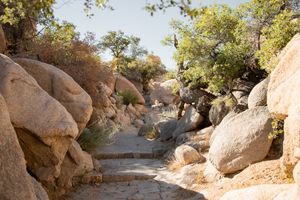 Joshua Tree National Park became official in 1994, formed where the Mojave and Colorado deserts meet. Barker Dam stands as one of its most historic trails, shaped by early cattle ranching and later preserved for hikers exploring its geology, boulders, and desert wildlife. This staircase is one of the trail’s quiet marks of human presence—a simple build, yet beautifully placed.