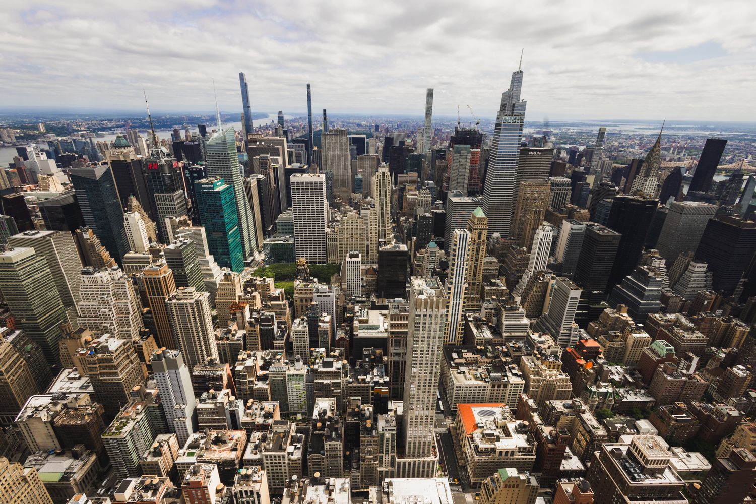 This print looks north from the Empire State Building, giving a clean view of Midtown Manhattan with Rockefeller Center, Bryant Park, and the New York Public Library centered in the frame. Buildings stack and stretch outward in every direction, rows of windows and architecture forming a dense grid that feels distinctly New York. The perspective is wide, balanced, and true to the scale of the city—strong vertical lines, deep depth, and a sense of endless movement beyond what can be seen.